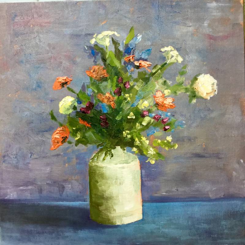 VAAS MET BLOEMEN 30x30 op paneel Verkocht